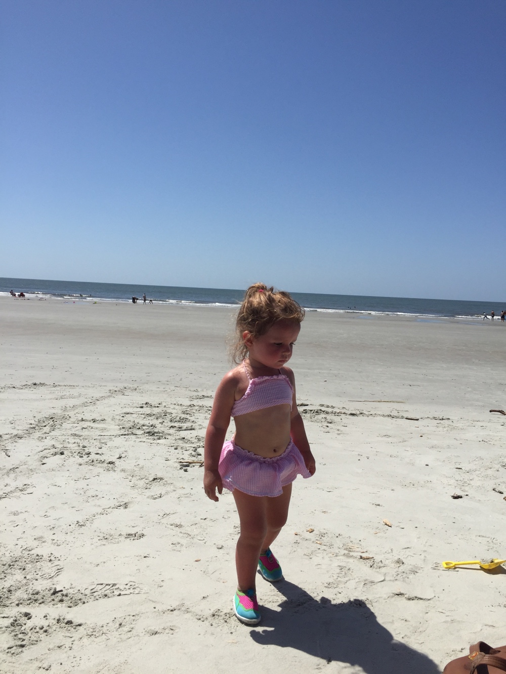 Selfie at the doctor before our beach trip. Pulmonologist said she sounded good after a month off of her meds. Hopefully she won't need them back. Or she will outgrow this reactive airway disease (asthma?) soon!